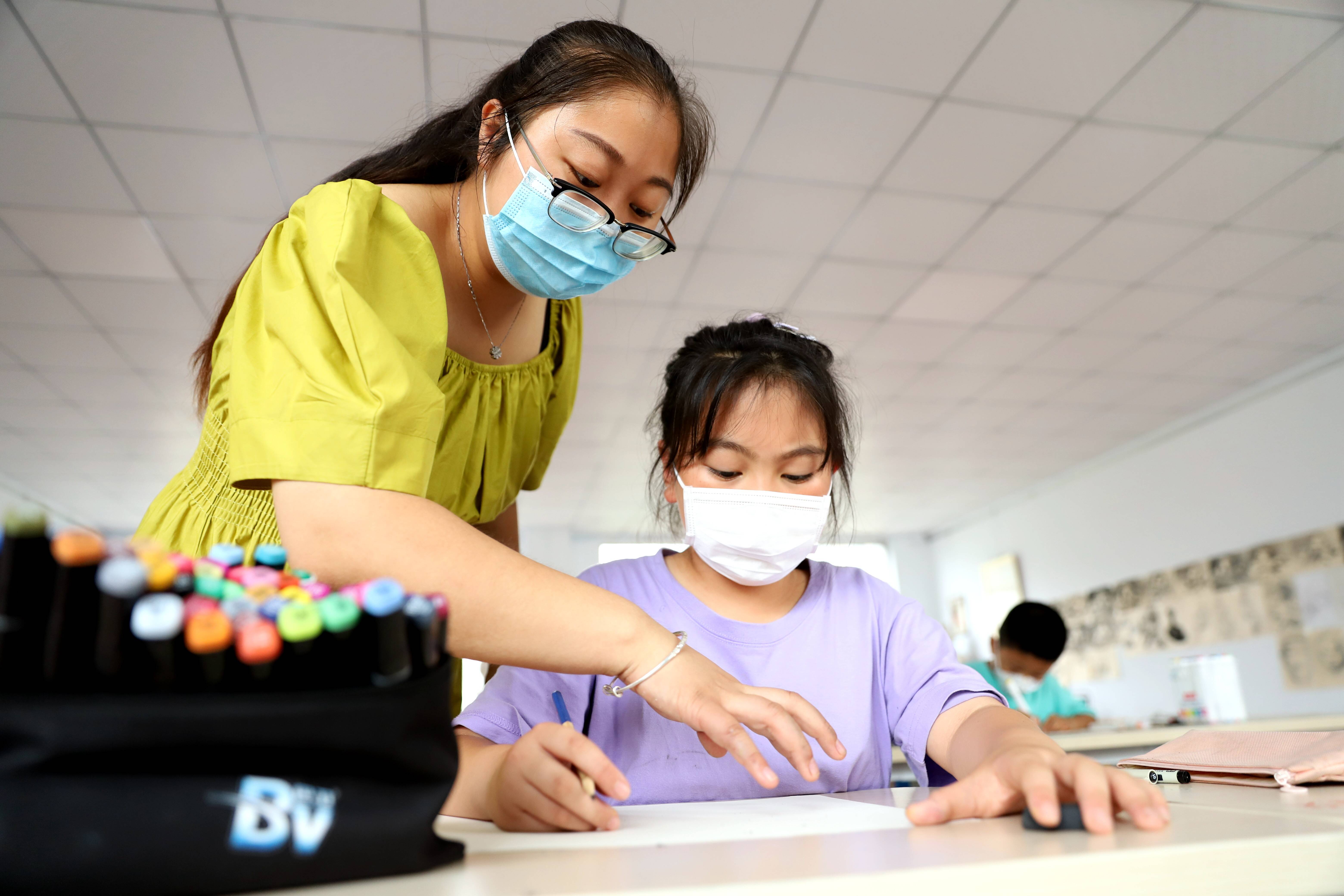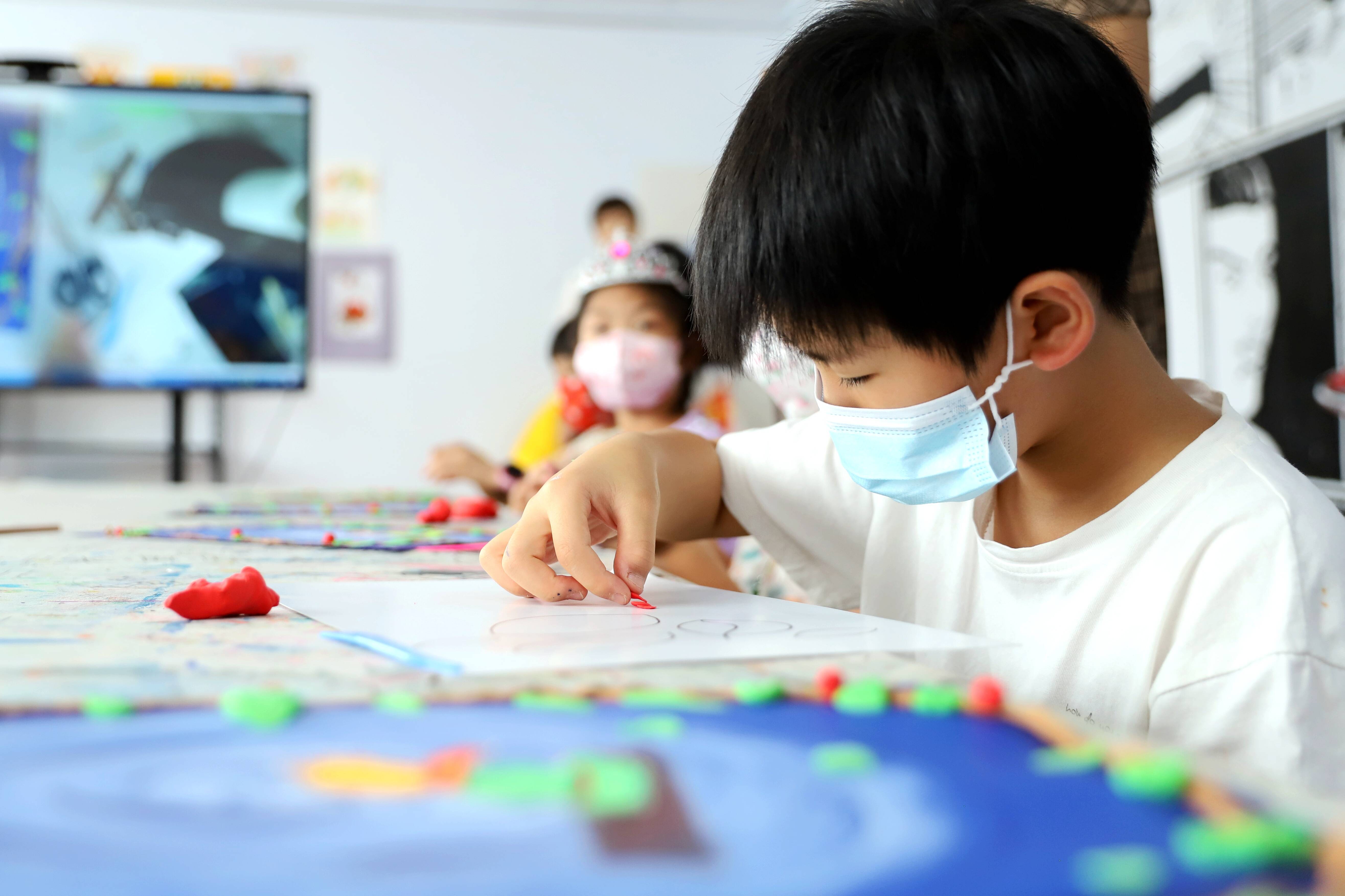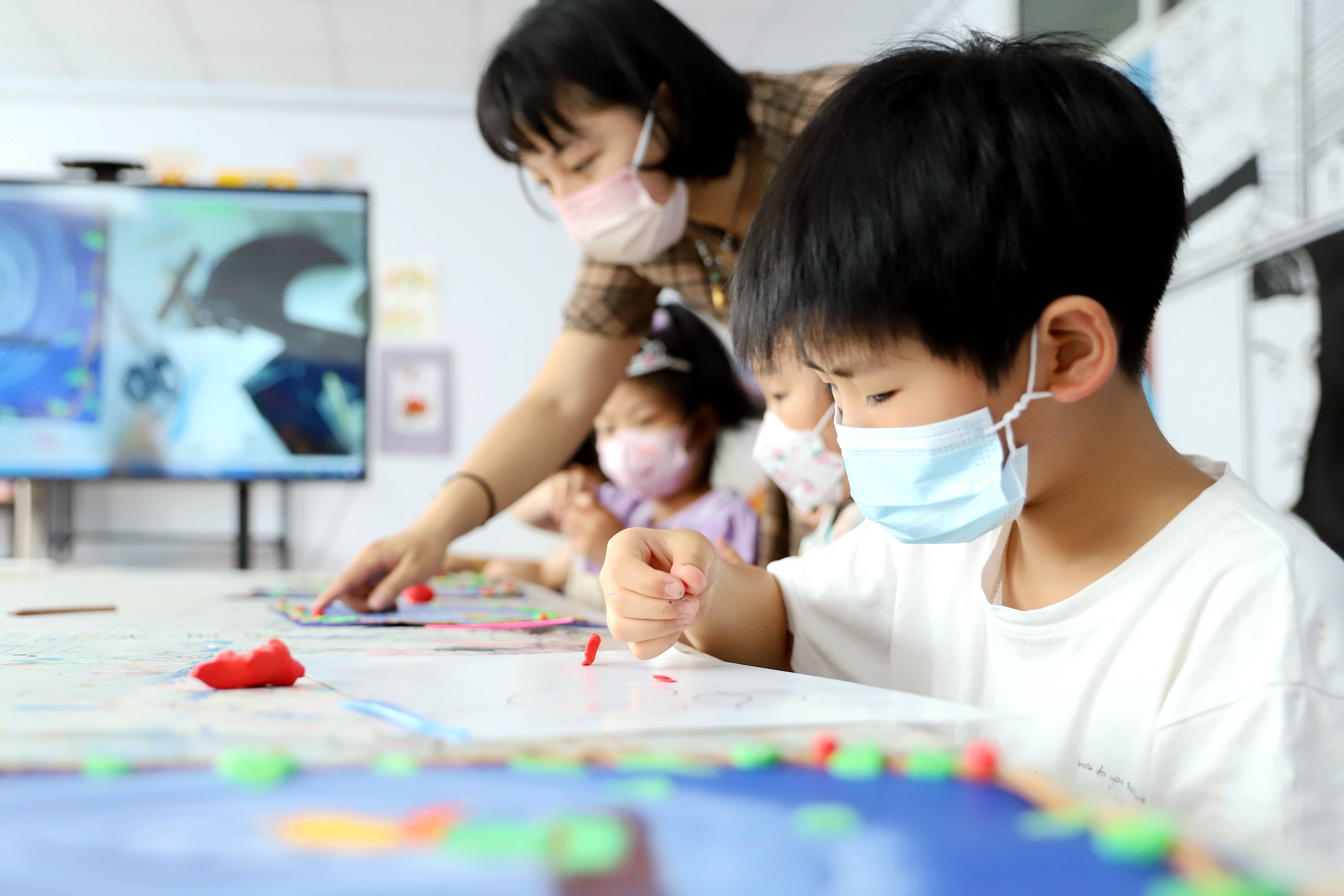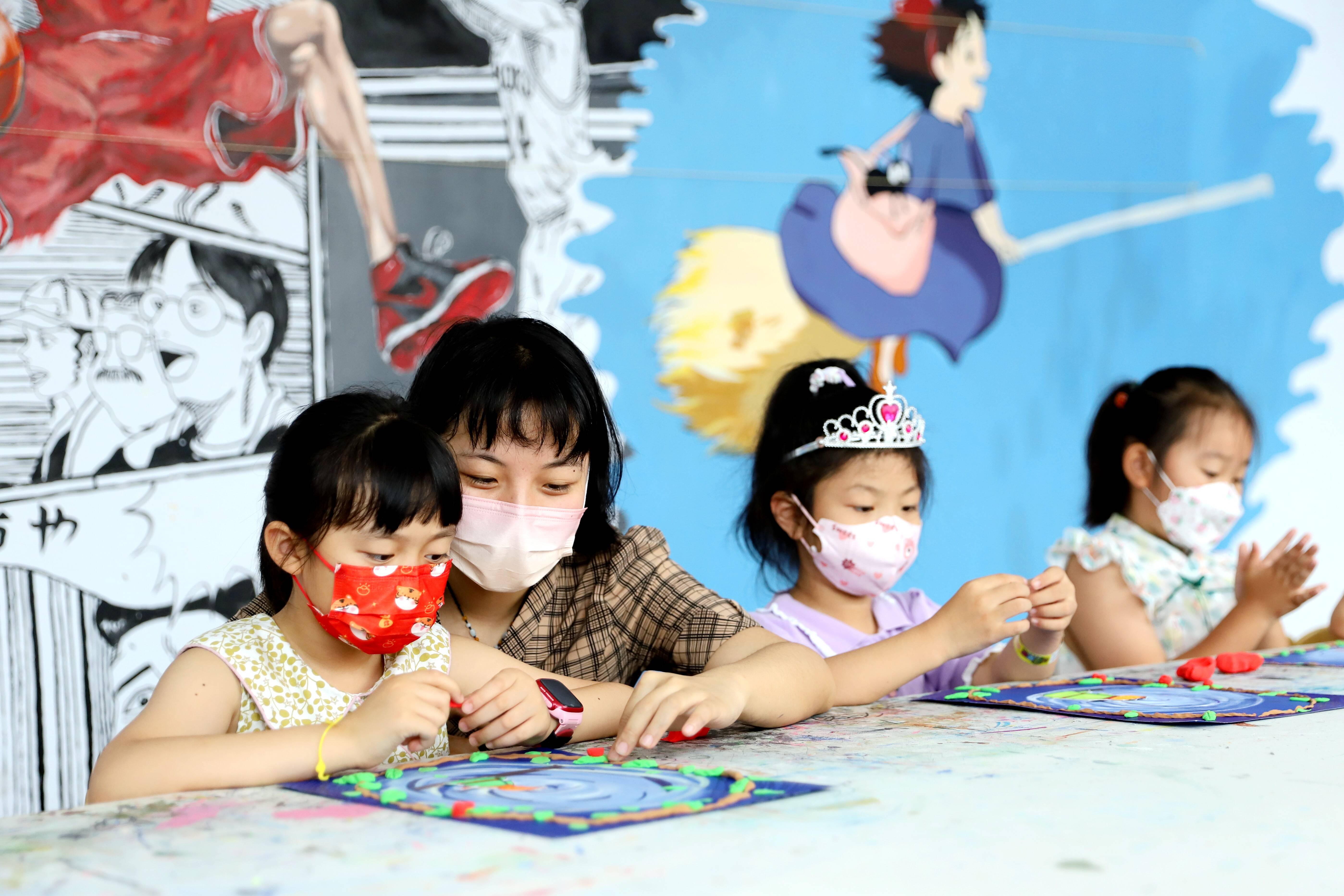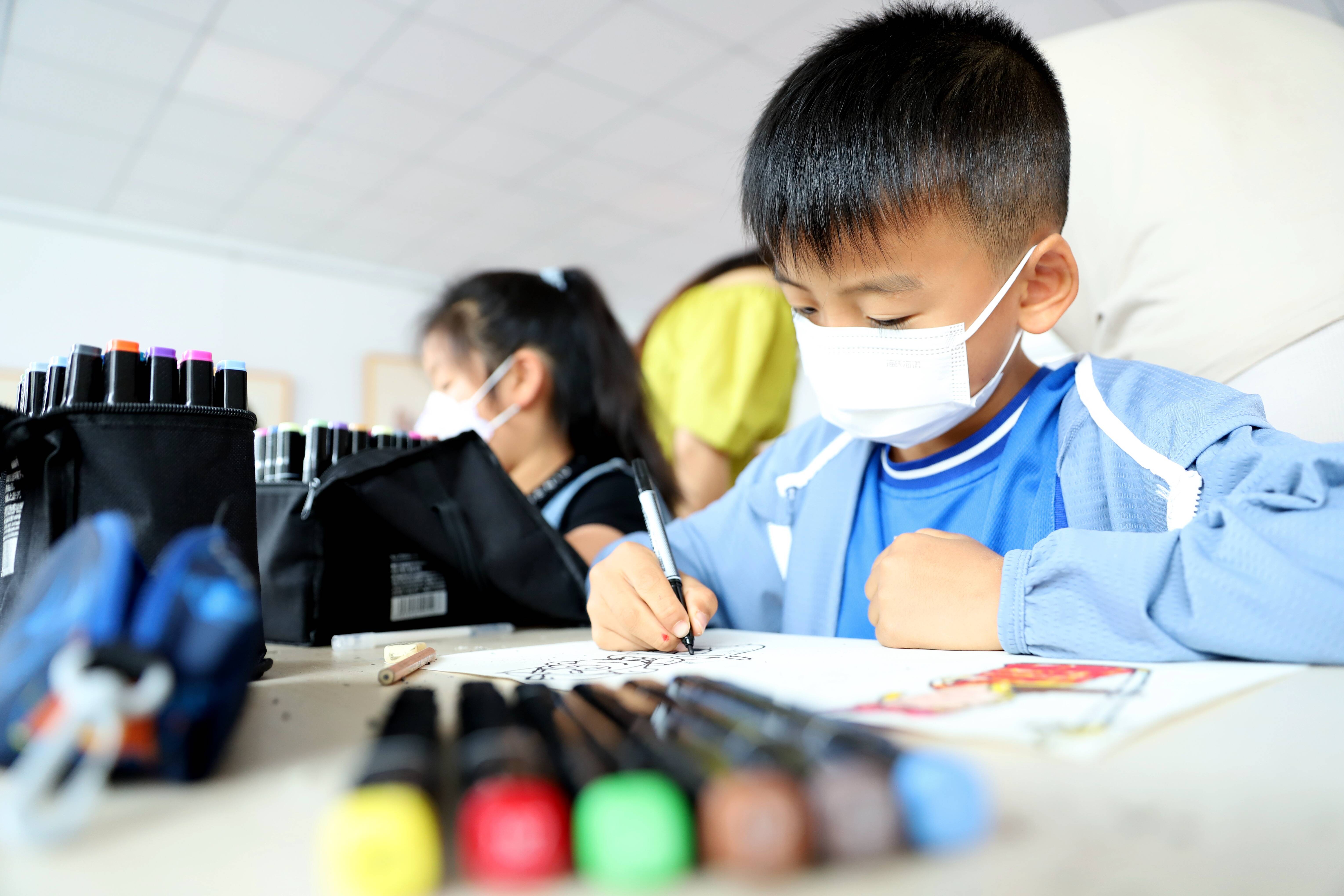 ▲少儿在区锦程艺术培训学校学习绘本制作。