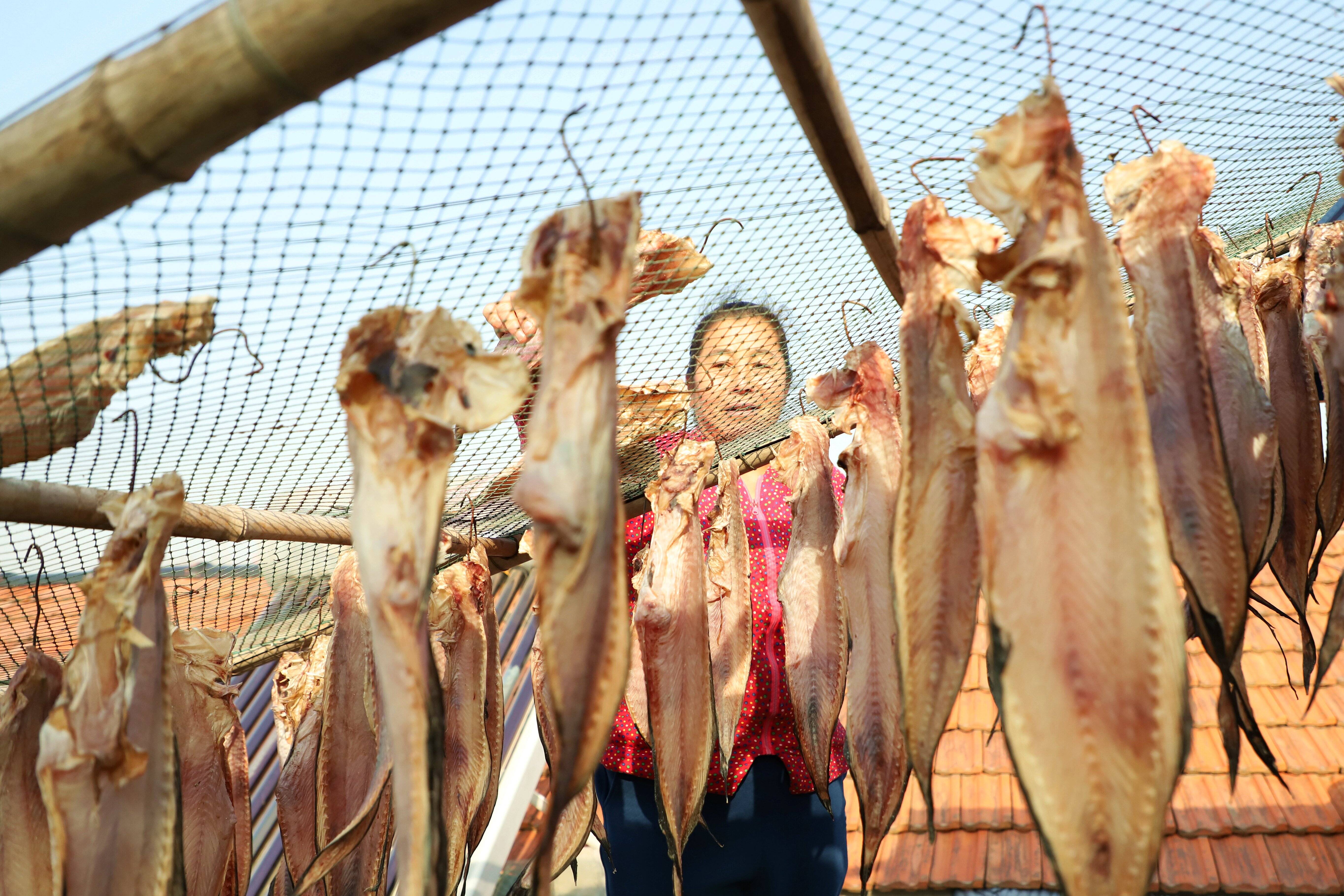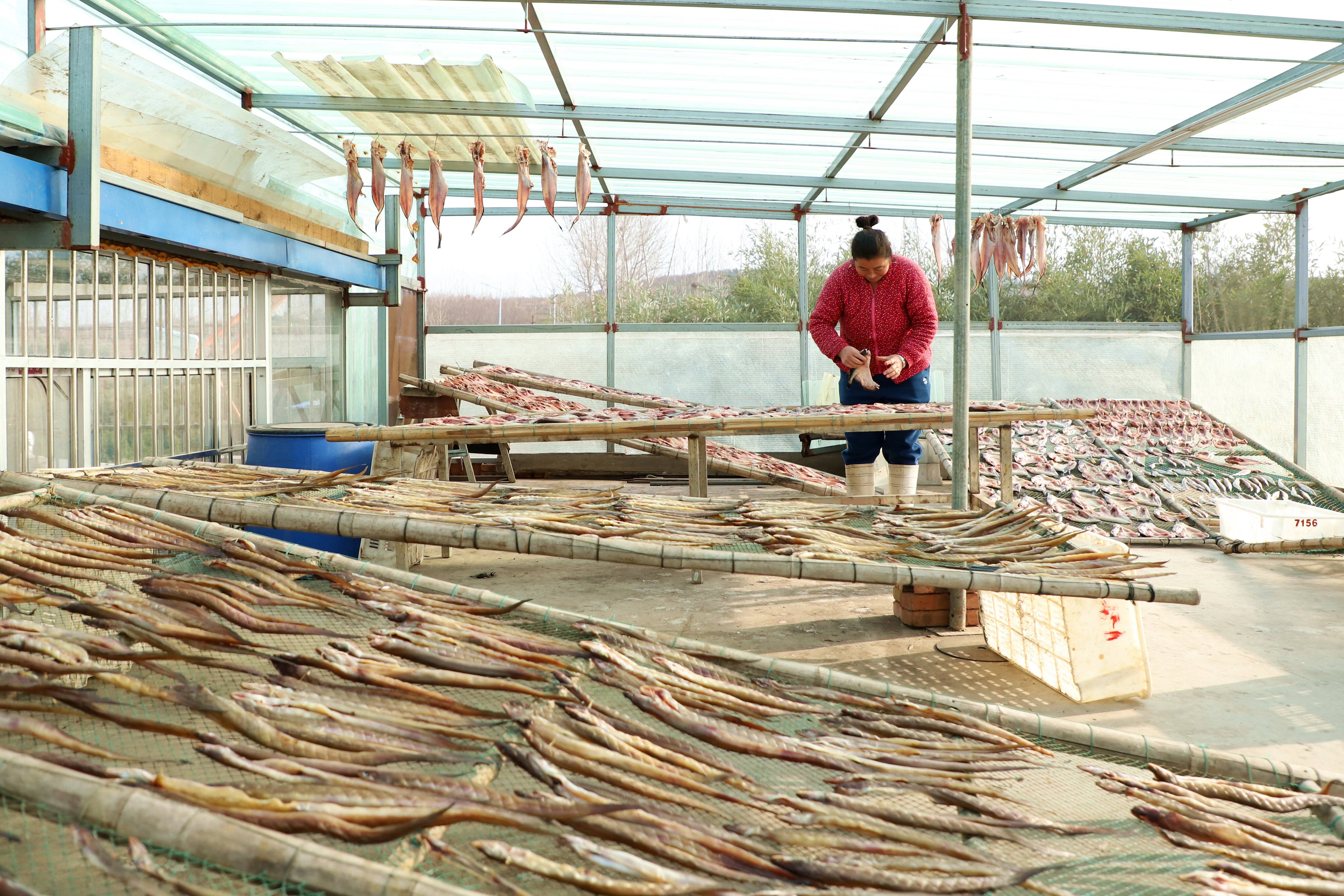 12月12日,在西海岸新区琅琊镇胡家山村,渔民在整理晾晒的海鱼。青岛沿海地区的甜晒鱼因口感筋道、味道咸鲜、风味独特,深受市民喜爱。进入冬季,赋闲在家的渔民将海鱼处理后晾晒在自家院里或码头上,经自然风干后售卖。据了解,晒鱼业已成为当地富民增收的特色产业之一,效益好的渔家一冬晒鱼的销售额可达近十万元。