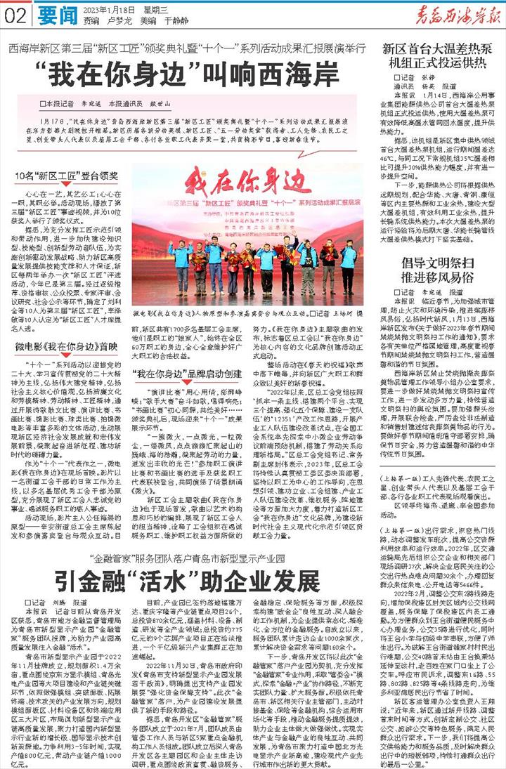 1月17日,“我在你身边”青岛西海岸新区第三届“新区工匠”颁奖典礼暨“十个一”系列活动成果汇报展演在东方影都大剧院拉开帷幕。新区历届各级劳动英模、新区工匠、“五一劳动奖章”获得者、工人先锋、农民工之星、创业带头人代表以及基层工会干部、各行各业职工代表齐聚一堂,共赏精彩节目,喜迎新春佳节。 心心在一艺,其艺必工;心心在一职,其职必举。活动现场,播放了第三届“新区工匠”事迹视频,并为10位获奖人举行了颁奖仪式。 据悉,为充分发挥工匠示范引领和带动作用,进一步加快建设知识型、技能型、创新型劳动者队伍,为实施创新驱动发展战略、助力新区高质量发展提供技能支撑和人才保证,新区每两年举办一次“新区工匠”评选活动,今年已是第三届。经过逐级推荐、资格审核、公众投票、专家评审、会议研究、社会公示等环节,确定了刘利全等10人为第三届“新区工匠”,李泽敬等10人认定为“新区工匠”人才库提名人选。 ▲微电影《我在你身边》人物原型和参演嘉宾登台与观众互动。记者 王培珂 摄 “十个一”系列活动以迎接党的二十大、学习宣传贯彻党的二十大精神为主线,弘扬伟大建党精神,弘扬社会主义核心价值观,弘扬清廉文化和劳模精神、劳动精神、工匠精神,通过开展诗歌散文比赛、演讲比赛、书画比赛、摄影比赛、球类比赛、拍摄微电影等丰富多彩的文体活动,生动展现新区经济社会发展成就和宏伟发展前景,凝聚起奋进新征程、建功新时代的磅礴力量。 作为“十个一”代表作之一,微电影《我在你身边》在现场首映。影片以一名街道工会干部的日常工作为主线,以多名基层优秀工会干部为原型,充分展现了新区工会人忠诚党的事业、竭诚服务职工的感人事迹。 活动现场,影片主人公任海晨的原型——辛安街道总工会主席陈起发和参演嘉宾登台与观众互动。目前,新区共有1700多名基层工会主席,他们是职工的“娘家人”,始终在全区60万职工的身边,全心全意维护好广大职工的合法权益。 “演讲比赛”用心用情,澎湃峥嵘;“歌手大赛”奋斗如歌,唱得响亮;“书画比赛”初心同源,共绘美好……颁奖典礼后,现场迎来“十个一”成果展示环节。 “一簇微火,一点微光,一粒微尘,一缕微风,点点滴滴汇聚起山的巍峨、海的浩瀚,凝聚起劳动的力量,迸发出丰收的光芒!”参加职工演讲比赛和书画比赛的选手及获奖职工代表联袂登台,共同演绎了情景朗诵《微火》。 新区工会主题歌曲《我在你身边》也于现场首发,歌曲以艺术的构思和巧妙的编排,展现了新区工会人的担当精神,诠释了工会组织在竭诚服务职工、维护职工权益方面所做的努力。《我在你身边》主题歌曲的发布,标志着区总工会以“我在你身边”为核心内容的文化品牌创建活动正式启动。 整场活动在《春天的祝福》歌声中落下帷幕,并向新区广大职工和群众致以美好的新春祝福。 “2022年以来,区总工会党组按照‘抓牢一条主线、搭建两个平台、实现三个提高、强化五个保障、建设一支队伍’的‘12351’产改工作思路,开展产业工人队伍建设改革试点,在全国工会系统率先探索中小微企业劳动争议前端预防机制,搭建了劳动关系治理新格局。”区总工会党组书记、常务副主席封伟表示,2023年,区总工会将持续认真贯彻工委区委决策部署,坚持以职工为中心的工作导向,在思想引领、建功立业、工会组建、产业工人队伍建设改革、维权服务、阵地建设等方面加大力度,着力打造新区工会“我在你身边”文化品牌,为建设新时代社会主义现代化示范引领区贡献工会力量。 (青岛西海岸新区融媒体中心出品) |