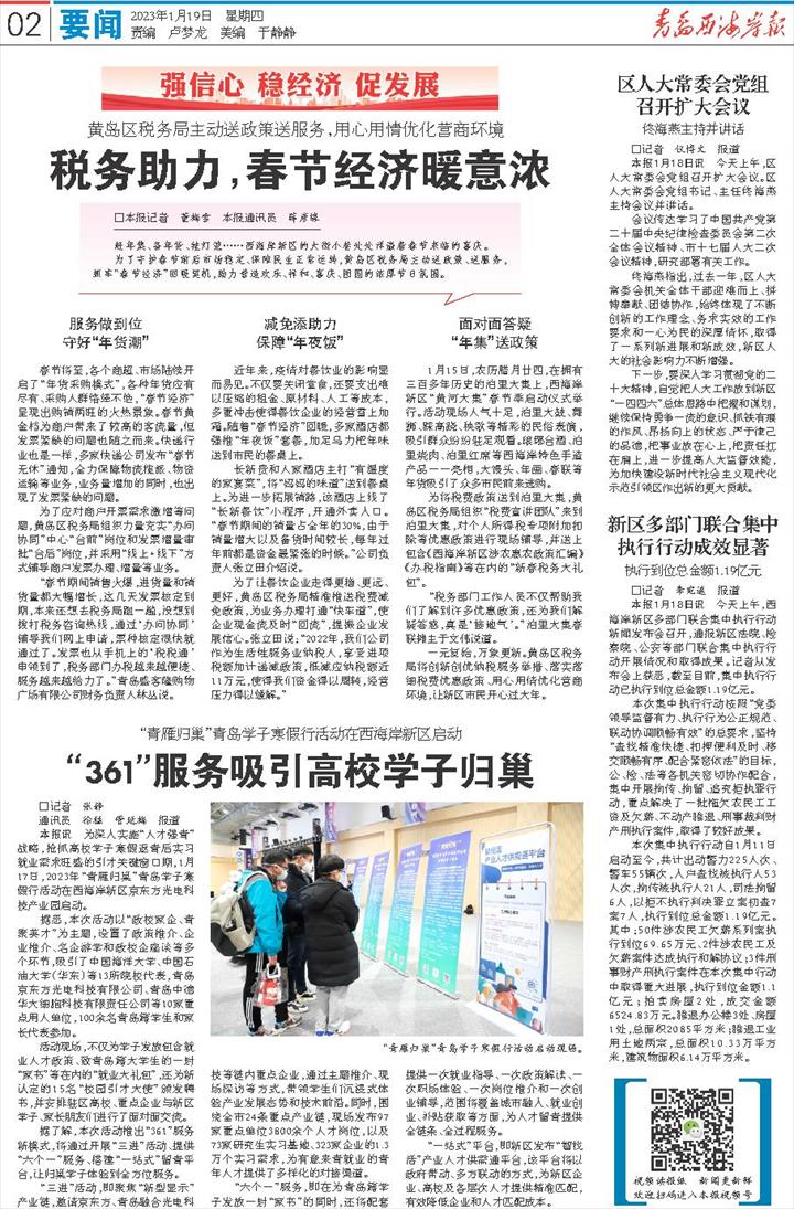 为深入实施“人才强青”战略,抢抓高校学子寒假返青后实习就业需求旺盛的引才关键窗口期,1月17日,2023年“青雁归巢”青岛学子寒假行活动在西海岸新区京东方光电科技产业园启动。 据悉,本次活动以“政校家企、青聚英才”为主题,设置了政策推介、企业推介、名企游学和政校企座谈等多个环节,吸引了中国海洋大学、中国石油大学(华东)等13所院校代表,青岛京东方光电科技有限公司、青岛中德华大细胞科技有限责任公司等10家重点用人单位,100余名青岛籍学生和家长代表参加。 活动现场,不仅为学子发放包含就业人才政策、致青岛籍大学生的一封“家书”等在内的“就业大礼包”,还为新认定的15名“校园引才大使”颁发聘书,并安排驻区高校、重点企业与新区学子、家长朋友们进行了面对面交流。 据了解,本次活动推出“361”服务新模式,将通过开展“三进”活动、提供“六个一”服务、搭建“一站式”留青平台,让归巢学子体验到全方位服务。 “三进”活动,即聚焦“新型显示”产业链,邀请京东方、青岛融合光电科技等链内重点企业,通过主题推介、现场探访等方式,带领学生们沉浸式体验产业发展态势和技术前沿。同时,围绕全市24条重点产业链,现场发布97家重点单位3800余个人才岗位,以及73家研究生实习基地、323家企业的1.3万个实习需求,为有意来青就业的青年人才提供了多样化的对接渠道。 ▲“青雁归巢”青岛学子寒假行活动启动现场。 “六个一”服务,即在为青岛籍学子发放一封“家书”的同时,还将配套提供一次就业指导、一次政策解读、一次职场体验、一次岗位推介和一次创业辅导,范围将覆盖城市融入、就业创业、补贴获取等方面,为人才留青提供全链条、全过程服务。 “一站式”平台,即新区发布“智找活”产业人才供需通平台,该平台将以政府带动、多方联动的方式,为新区企业、高校及各层次人才提供精准匹配,有效降低企业和人才匹配成本。 (青岛西海岸新区融媒体中心出品) |
