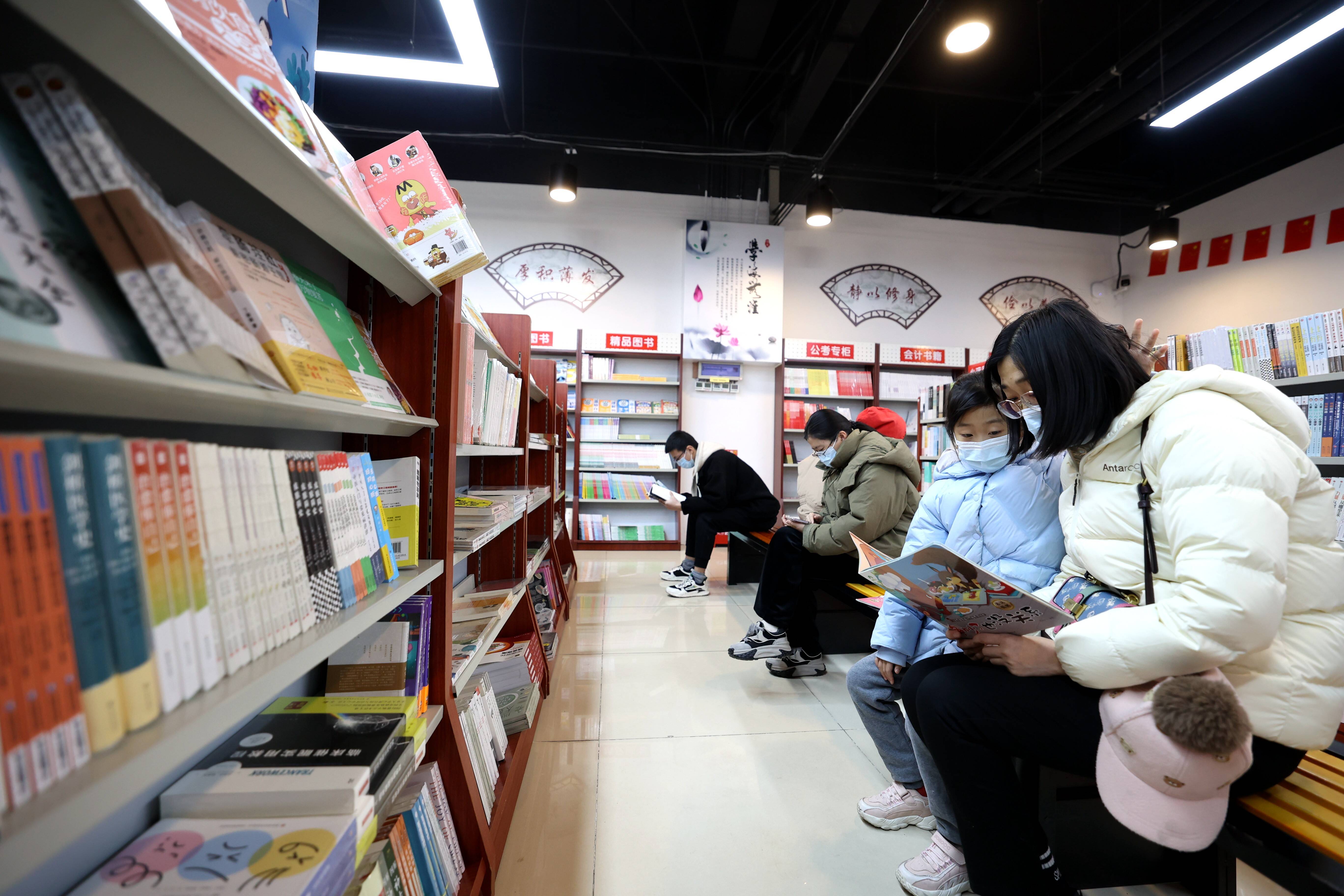 寒假期间,西海岸新区各大书店成了学生和家长的热门打卡地,不少学生和家长选择到书店给自己“充电”,在浓浓书香中度过一个充实而快乐的假期。图为1月30日,家长带着孩子在双珠路新华书店阅读图书。
