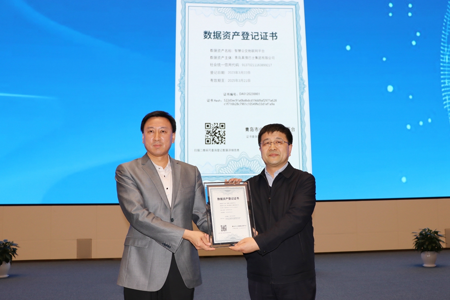 3月22日上午,青岛市数据沙龙活动(第三期)在西海岸新区举办。活动现场,青岛市公共数据运营平台向青岛真情巴士集团有限公司颁发全市第一张数据资产登记证书,标志着青岛市数据资产评估工作取得实质性进展,对西海岸加快推进数据要素市场化改革具有里程碑式的重要意义。