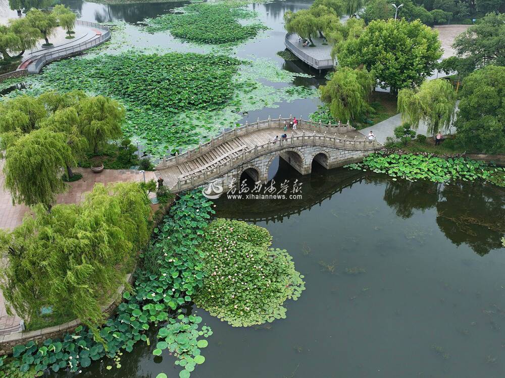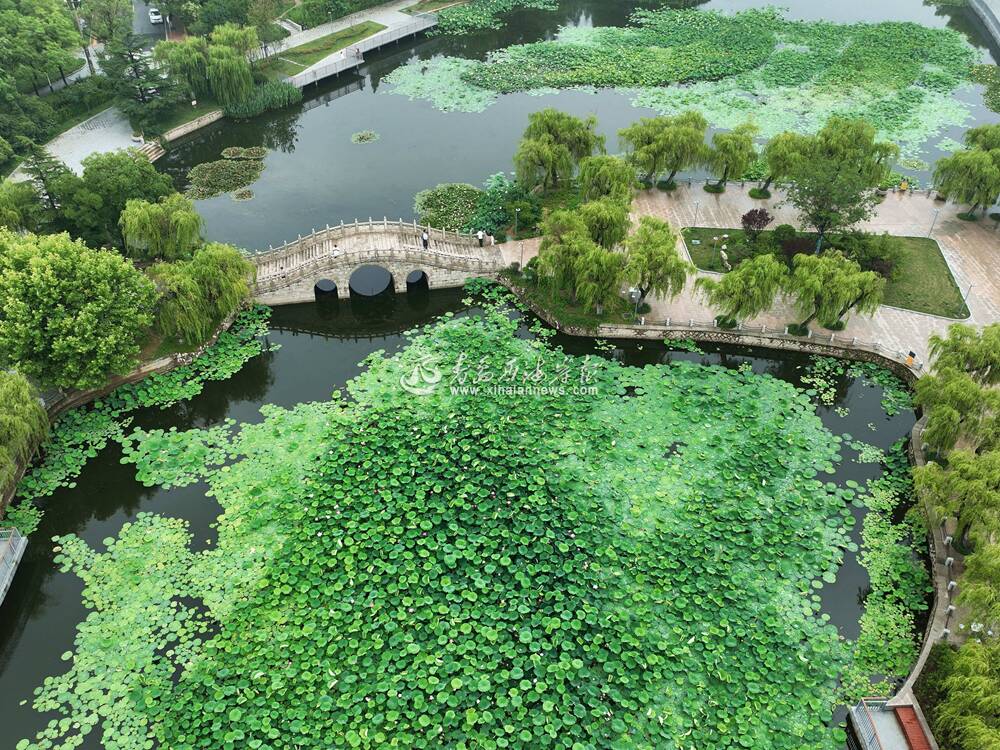 ▲7月4日,双珠公园荷花盛开(无人机照片)。