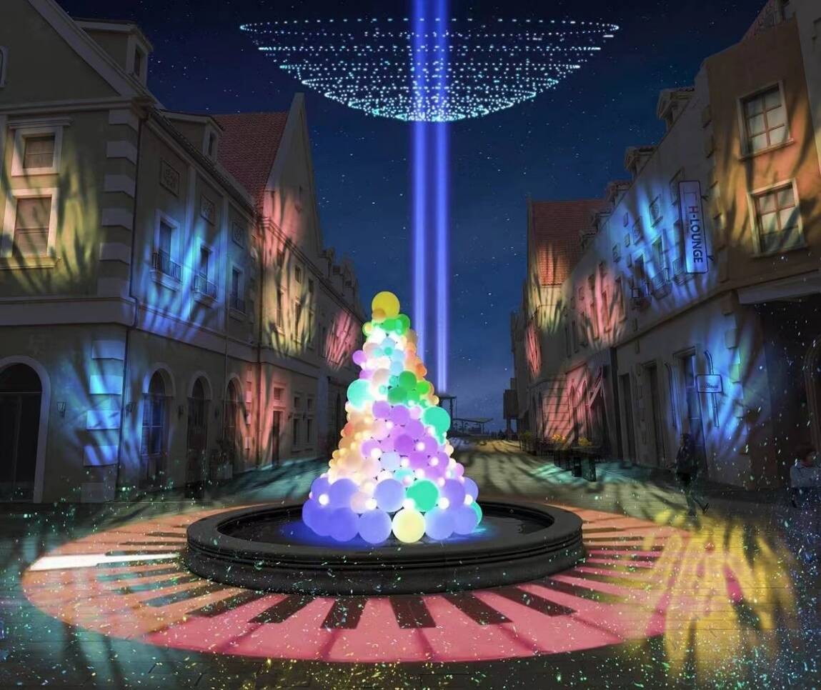 另外,红树林小镇广场旁的海边沙滩上空,还会呈现无人机天幕秀。以天为幕,以海为景,每场近千架无人机,在图案编排中呈现出一幅幅精彩画面。数十种复杂多变的图案变化集艺术性、创意性、震撼力于一体,打造出一场精彩绝伦的天幕秀。