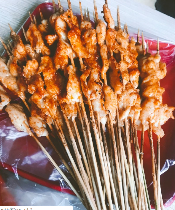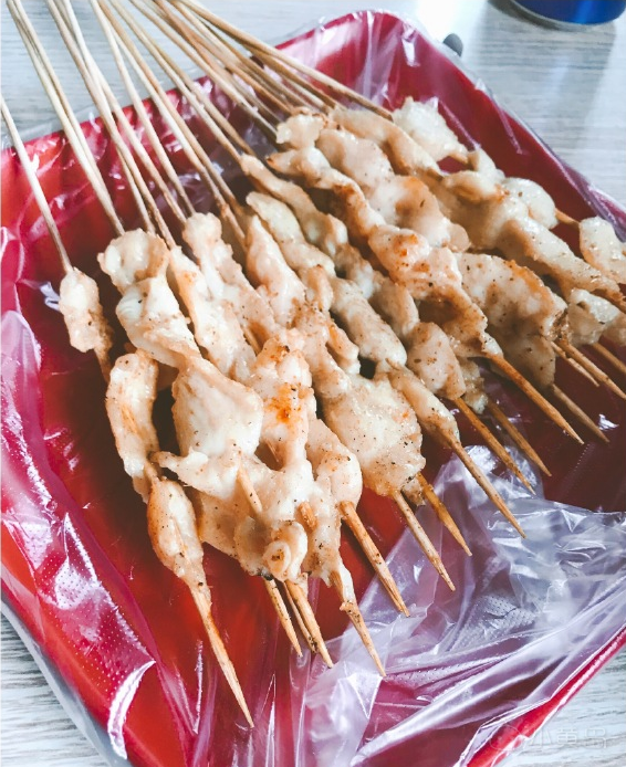 其实从小就吃这种串。只是那时候满大街满市场都是,就跟现在的烧烤一样。后来几年出去上学 就再也没有吃过。大学毕业后回家,听很多朋友说“港头陈鸡肉串”当时根本没有想到是这种串 但是大家都说好吃 离着我家又近 作为吃货当然要去尝一尝。到了之后,先看到的是烧烤师傅 原来二十年前就认识 便也知道鸡肉串是什么了 还是小时候的味道 带着碳香味 喜欢吃淀粉肠[愉快]